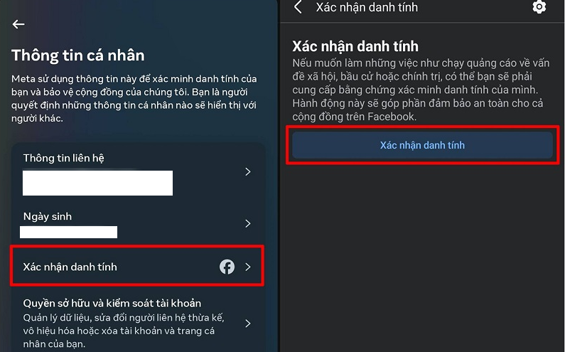 Bước 2 – Chọn mục xác nhận danh tính